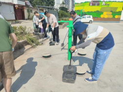 志愿者们在村委会干部的指导下仔细清理了村民们的日常活动重要场所---村委会前广场。在37℃的高温和刺眼的骄阳下,大家斗志昂扬,分工明确,有条不紊地清扫着、整理着、搬运着,汗水浸透衣衫,阳光刺痛皮肤,但无一人叫苦叫累、临阵退缩。