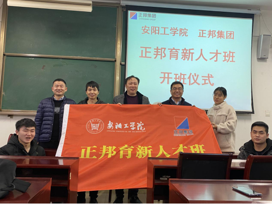 会上王国栋副经理和王昊苏经理为“正邦育新人才班”授旗。会后双方嘉宾和同学们合影留念。