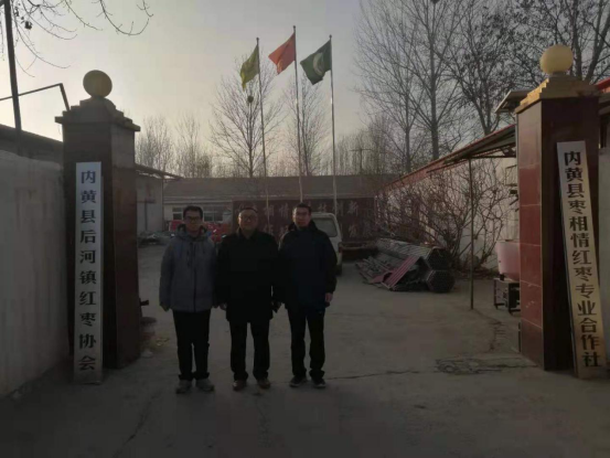 图为内黄县枣相情红枣专业合作社协会会长(中)和公司王景顺副经理(右)洽谈合影留念