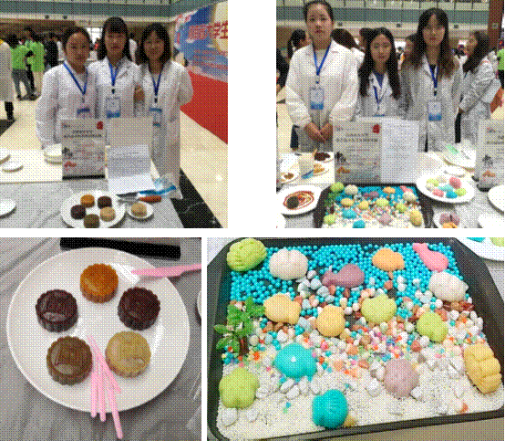 公司马剑新、李翠华、王鑫,张亚新、郭嘉钰、程景阳和董赵微、马真真、李会敏三组同学的作品“满月”、“艾叶月禅”和“皓月照人圆”分别获得创意面皮类-冰皮、创意馅料-果蔬馅类和创意馅料-鲜花及其他馅类三等奖。