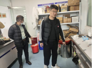 3月14日,公司党总支书记赵驰欣带领实验室安全检查小组成员,对A03二楼的实验室进行了全面检查。