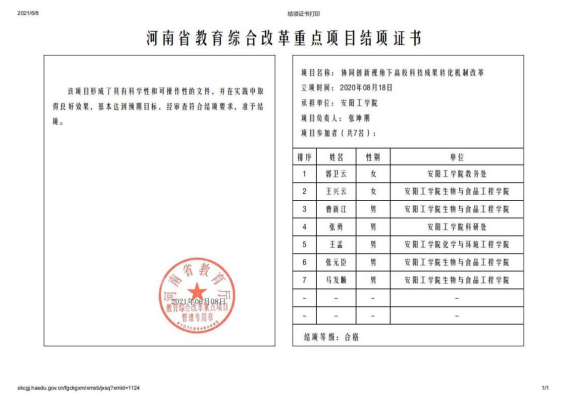 5.河南省教育综合改革重点项目:协同创新视角下高校科技成果转化机制改革
