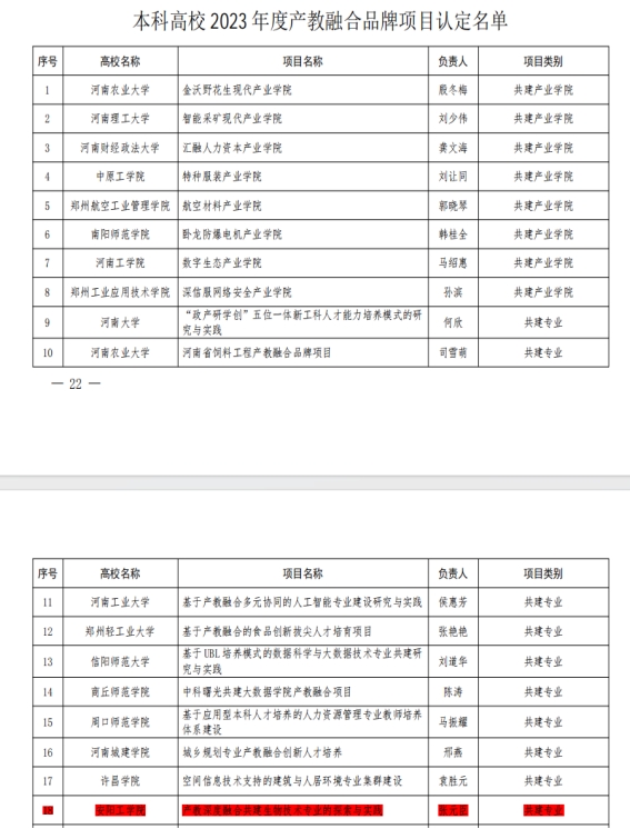 3.2023年度省级教学质量工程项目:产教深度融合共理生物技术专业的探索与实践