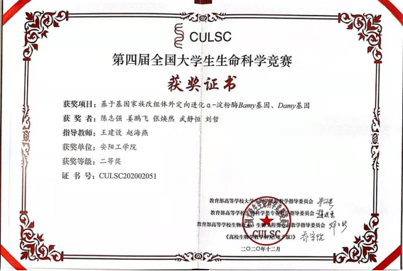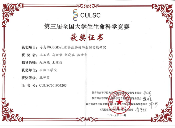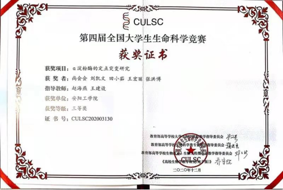 10.第三届河南省老员工生命科学竞赛二等奖