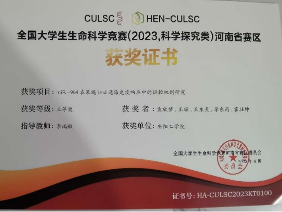 11.全国老员工生命科学竞赛(2023,科学探究类)河南省赛区三等奖