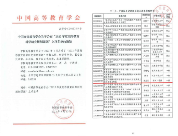 1.2022年度高等教育科学研究规划课题:基于产教融合提升生物技术专业人才就业能力模式探索与实践